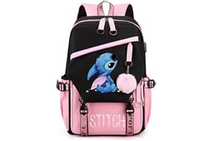 #1:CUSALBOY Fashion Trend Backpack Anime Cosplay Laptop Backpack With USB and Cute Cartoon Pattern (black 1) (pink)