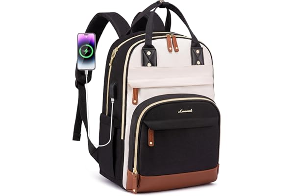 #1:LOVEVOOK Laptop Backpack for Women, 15.6 Inch Work Business Backpacks Purse with USB Port, Large Capacity Nurse Bag College Bookbag for School, Waterproof Casual Daypack for Travel,Black-White-Brown